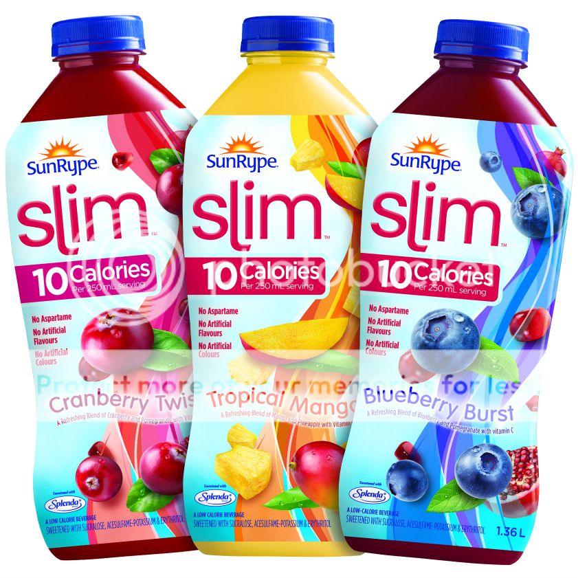 Slim by SunRype is a low calorie beverage that combines real fruit juices with only natural flavors and a sucralose blend designed to deliver more natural fruit taste. They contain no artificial flavours, no artificial colors and no aspartame. If you’re looking to slash calories, it’s important to be mindful of what’s in your glass as well as what’s on your plate. Slim by SunRype contains only 10 calories per 250mL serving and delivers delicious, satisfying fruit taste.
